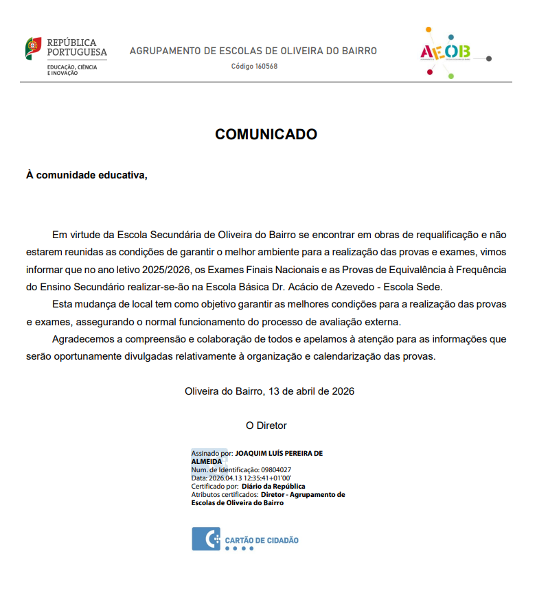 Alertam-se os pais e encarregados de educação para possíveis constrangimentos ao normal funcionamento dos estabelecimentos de educação e ensino do AEOB.